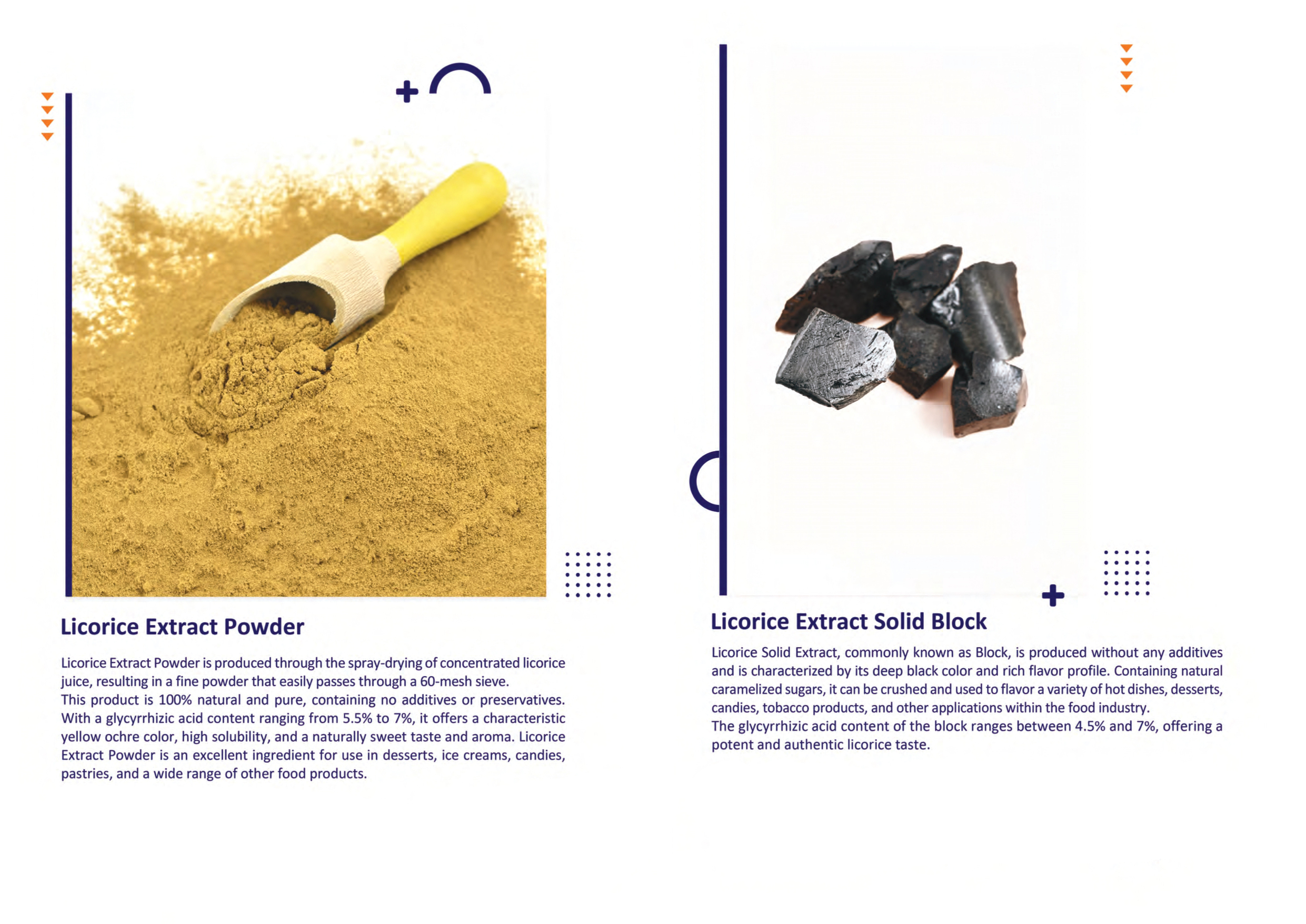 Licorice extract is a valuable product widely used in both the food and pharmaceutical industries. Extracted from the root of the licorice plant, it is known for its soothing and medicinal effects. Compounds like glycyrrhizin support the nervous system and promote relaxation. Licorice extract also acts as a natural disinfectant, aiding in the treatment of respiratory and digestive infections, making it an ideal component for natural medications and supplements.